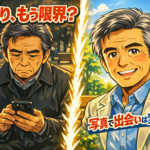 スマホのインカメラを自分に向けた瞬間、画面に映し出された「見知らぬ老人」に愕然とする。これが、マッチングアプリに挑戦しようとする60代男性...